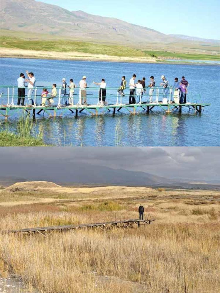 Göldeki çekilmenin vahim bir düzeyde olduğunu belirten Coşar, "Yıllar önce herkes buralara gelip balık tutar ve balıkçılık yapardı. Hatta sahil koruma ekipleri de botlarını bu görmüş olduğunuz iskeleye bağlardı. Küresel ısınmadan dolayı gölün çekilmesiyle birlikte şu an gördüğümüz alanda daha önce çektiğimiz fotoğraflara baktığımızda müthiş bir fark var arada. Önümüzdeki yıllarda yeterince yağış yağmazsa daha kötü bir manzarayla karşı karşıya kalmamız kaçınılmazdır. Göldeki çekilmeyi artık herkes bariz bir şekilde görebiliyor. 2 yıl önce çektiğimiz fotoğraflar ve bugün çektiğimiz fotoğraflar arasında bile büyük bir fark var. Göldeki çekilme çok vahim bir durumdadır. Bunu herkes görüyor ve biliyor. Burası geçmiş yıllarda gölün en gözde yerlerinden biriydi. Vatandaşlar burayı plaj olarak kullanıyordu" dedi.