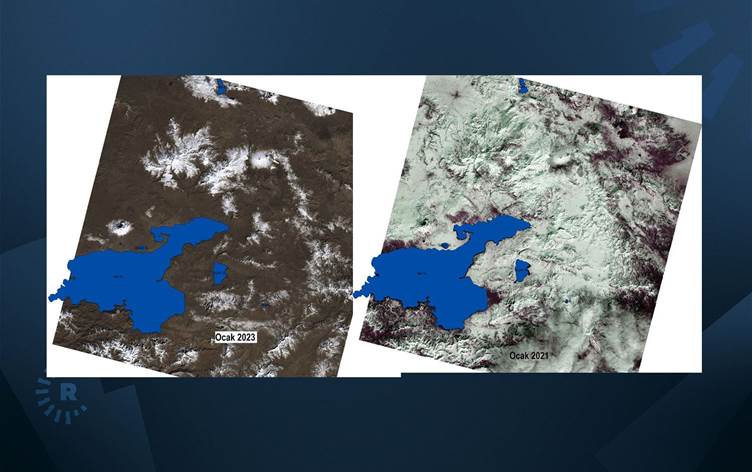 Van Gölü Havzası ve çevresini gösteren son 4 yılın ocak ayına ait görüntüleri inceleyen Akkuş, bu yıl havzanın neredeyse hiç kar almadığını söyledi.