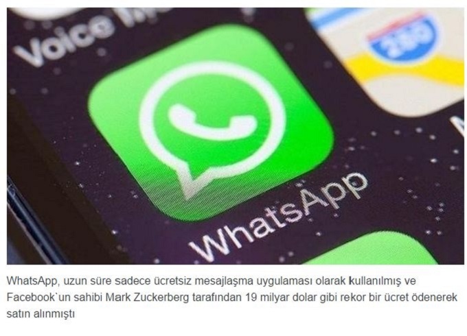 WhatsApp, uzun süre sadece ücretsiz mesajlaşma uygulaması olarak kullanılmış ve Facebook`un sahibi Mark Zuckerberg tarafından 19 milyar dolar gibi rekor bir ücret ödenerek satın alınmıştı