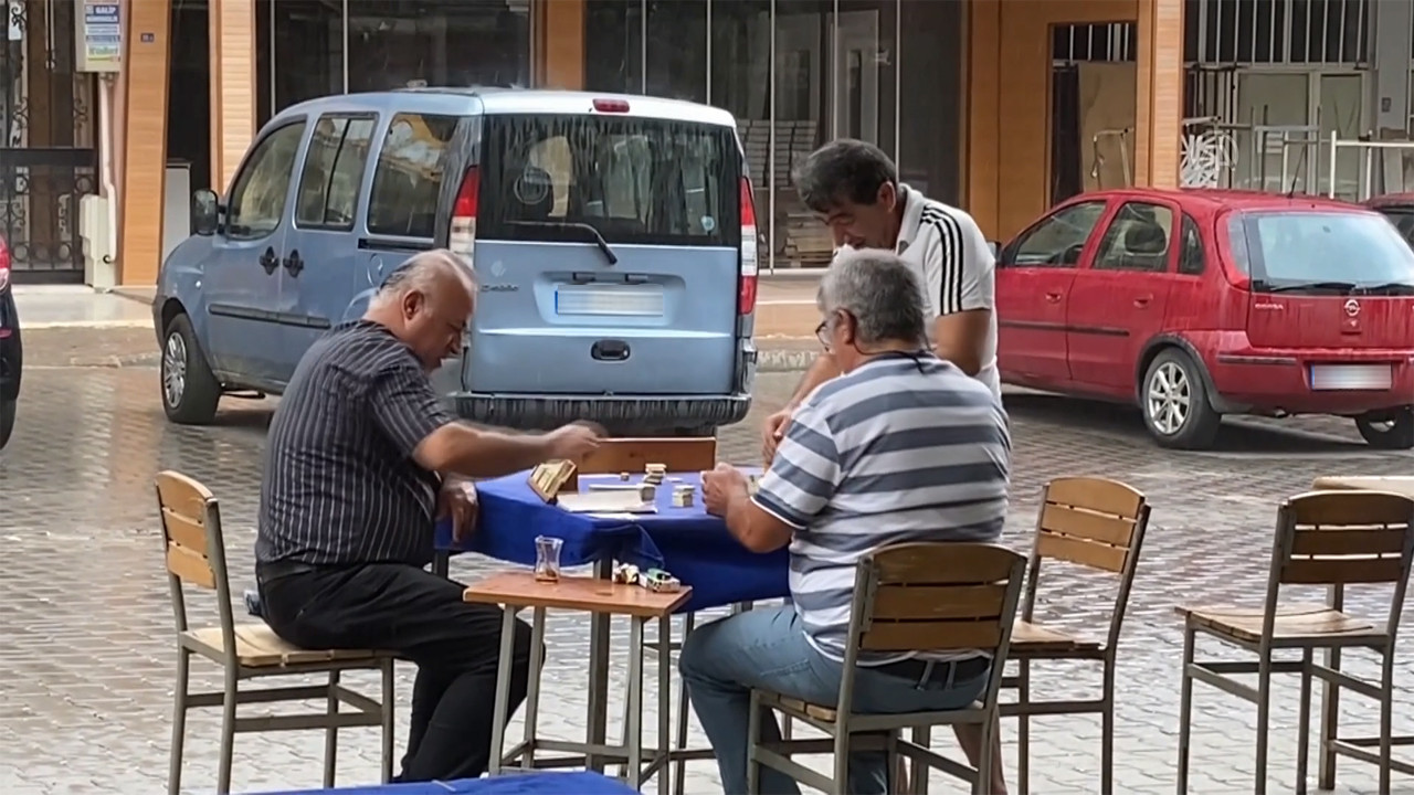 AA'nın haberine göre, ilçede öğlen saatlerinden sonra yağmur etkili oldu. Yeni Mahalle'deki bir kahvehanenin dışındaki masada okey oynayan 3 kişi ise yağmura aldırış etmeden oyun oynamaya devam etti.