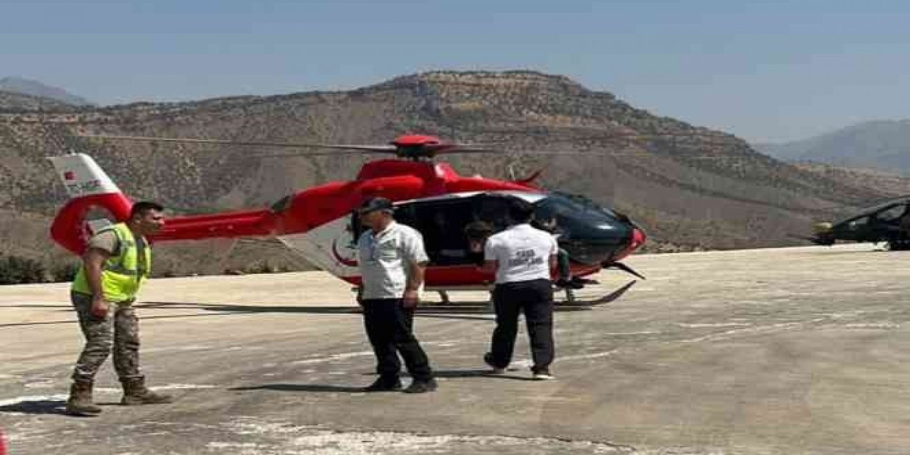 Hakkari'nin Derecik ilçesinde iş kazası sonucu yaralanan vatandaşın imdadına ambulans helikopter yetişti.