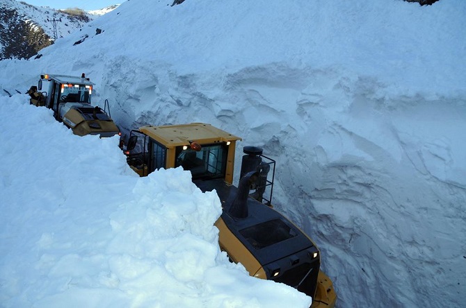 Yüksekova'da etkili olan kar yağışının ardından kapalı köy yollarının ulaşıma açılması için seferber olan ekipler, bir yandan da çığlarla mücadele ediyor. İlçeye 50 kilometre uzaklıkta bulunan Güvenli Köyü yoluna önceki gün çığ düştü. Yolu ulaşıma kapatan tonlarca karı temizlemek için İl Özel İdaresi Yüksekova Şantiye Şefliği karla mücadele ekipleri bölgeye gitti. Yüksekliği yaklaşık 6 metreyi bulan karı temizlemek için yoğun çaba gösteren ekipler, çok yavaş bir şekilde ilerleyebiliyor. Kardan tünneler arasında çalışma yapan ekipler, yolu ulaşıma açmak için gece gündüz çalıştıklarını söyledi.