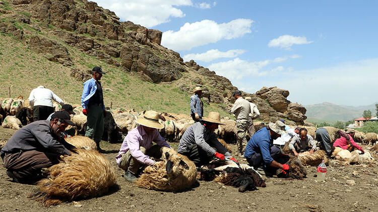 Hakkâri'nin Yüksekova ilçesinde havaların ısınmasıyla yaylalara çıkan besiciler, Cilo Dağı eteklerinde koyunların yünlerini kırkıp yazlık bakımlarını yapmaya başladı. İmece usulü yardımlaşan besiciler, yünü satıp, gelir elde ediyor.