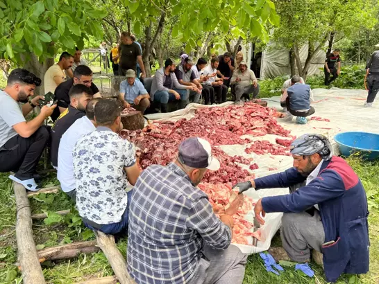 Yüksekova'da kurban etleri toplanıp, herkese eşit dağıtılıyor