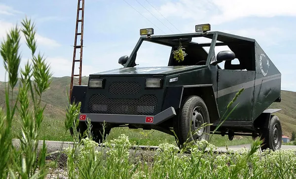 Hakkari'nin Yüksekova ilçesinde çobanlık yapan Mehmet Şerif Karahan, 1,5 sene üzerinde çalışarak 20 litrelik benzinle 150 kilometre giden 'Hummer' tarzı bir araba yaptı.