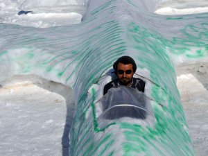 Yüksekovalı genç kardan uçak yaptı